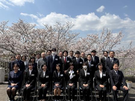 今年は前日までの雨が心配されましたが、当日は青空が広がり、満開の桜が出迎えてくれました。風に舞う桜吹雪も美しく、春らしい華やかな雰囲気の中で入社式を執り行うことができました。